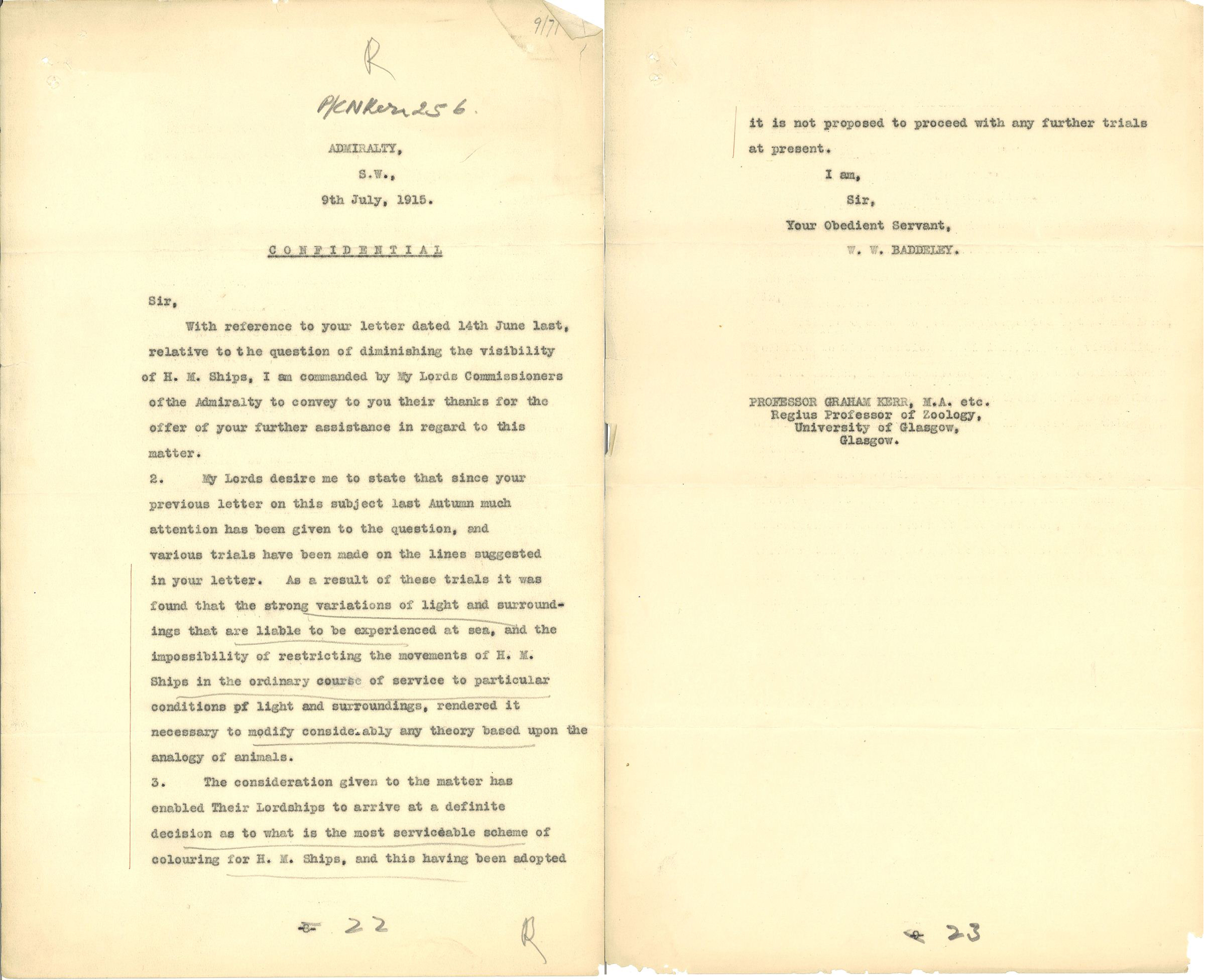 NJS: When we talk about dazzle, we instinctively think of Norman Wilkinson, as he’s credited as the mastermind of dazzle who led the whole team. But I still find myself thinking of Kerr and wondering what happened to him. He wrote to the Admiralty again to express his dismay at not having his idea taken forward and I think he does see similarities between his ideas and those of Wilkinson. Y. YY You can tell he’s frustrated. He could be argued to have planted the seed, but there’s no acknowledgement of this.